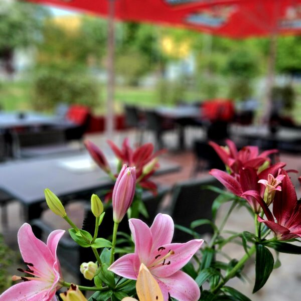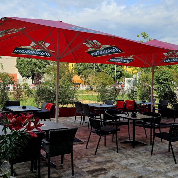 Unser Highlight: Genießen sie die Sonne auf unserer großzügigen Außenterrasse mit 50 Plätzen – perfekt für laue Abende und gesellige Runden.